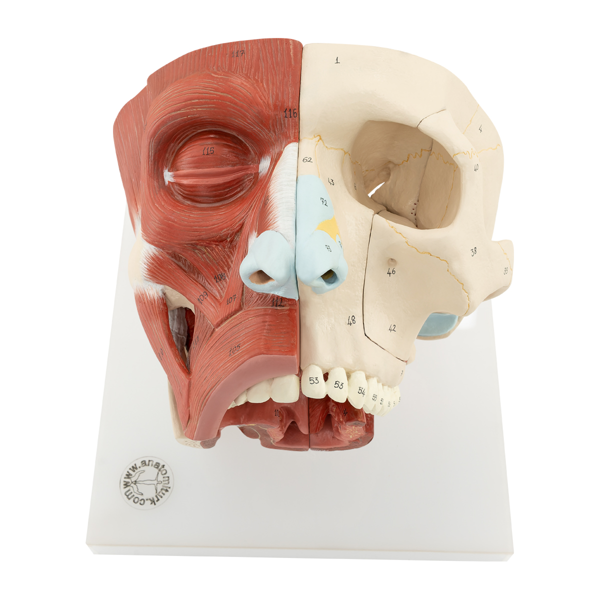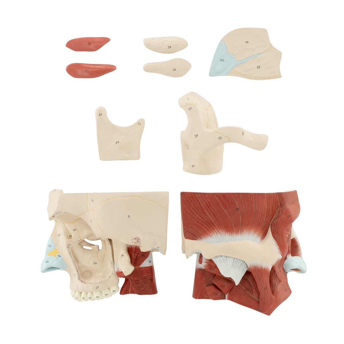 Özel geliştirilmiş plastikten imal edilmiş olup normal boyutlara göre 2 kez büyütülmüştür. Model toplamda 9 parçaya ayrılabilmektedir ve median kesite sahiptir. Sol yarı, çıkarılabilir üst ve alt nazal konka ile kafa kemiklerini göstermektedir. Modelin sağ yarısı, çıkarılabilir nazal septum ile burnun mukoza zarını ve mimik kaslarını göstermektedir. Bir kaide üzerine montelidir.