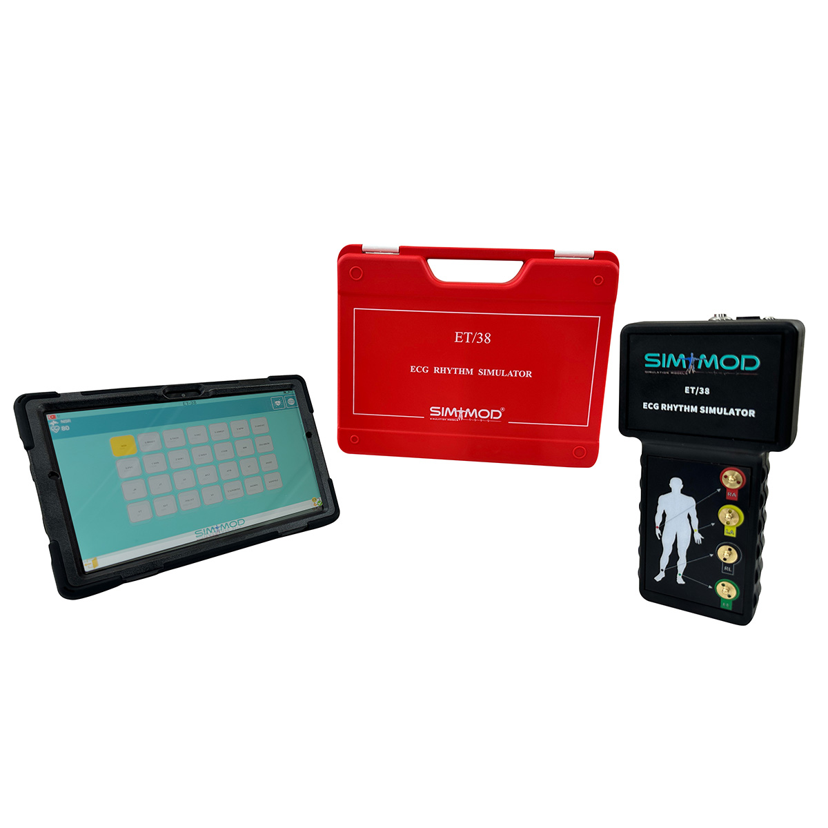 EKG ritim simülatörü ve 7 inç dokunmatik ekrana sahip bir kontrol tableti içermektedir. Kontrol tabletinden ayarlanan ritimler gerçek hasta başı monitöründe veya defibrilasyon cihazında görüntülenebilir. Birbirinden farklı ritim hızları pediatrik veya yetişkin hastaya göre ayarlanabilen 43 adet ritim içermektedir. Ritim simülatörü tüm mankenlerle kullanıma uygundur. Şarjlı olan model; tam dolu batarya ile 8 saat çalışabilmektedir. Cihaz ve tabletin yer aldığı özel taşıma çantası verilmektedir.