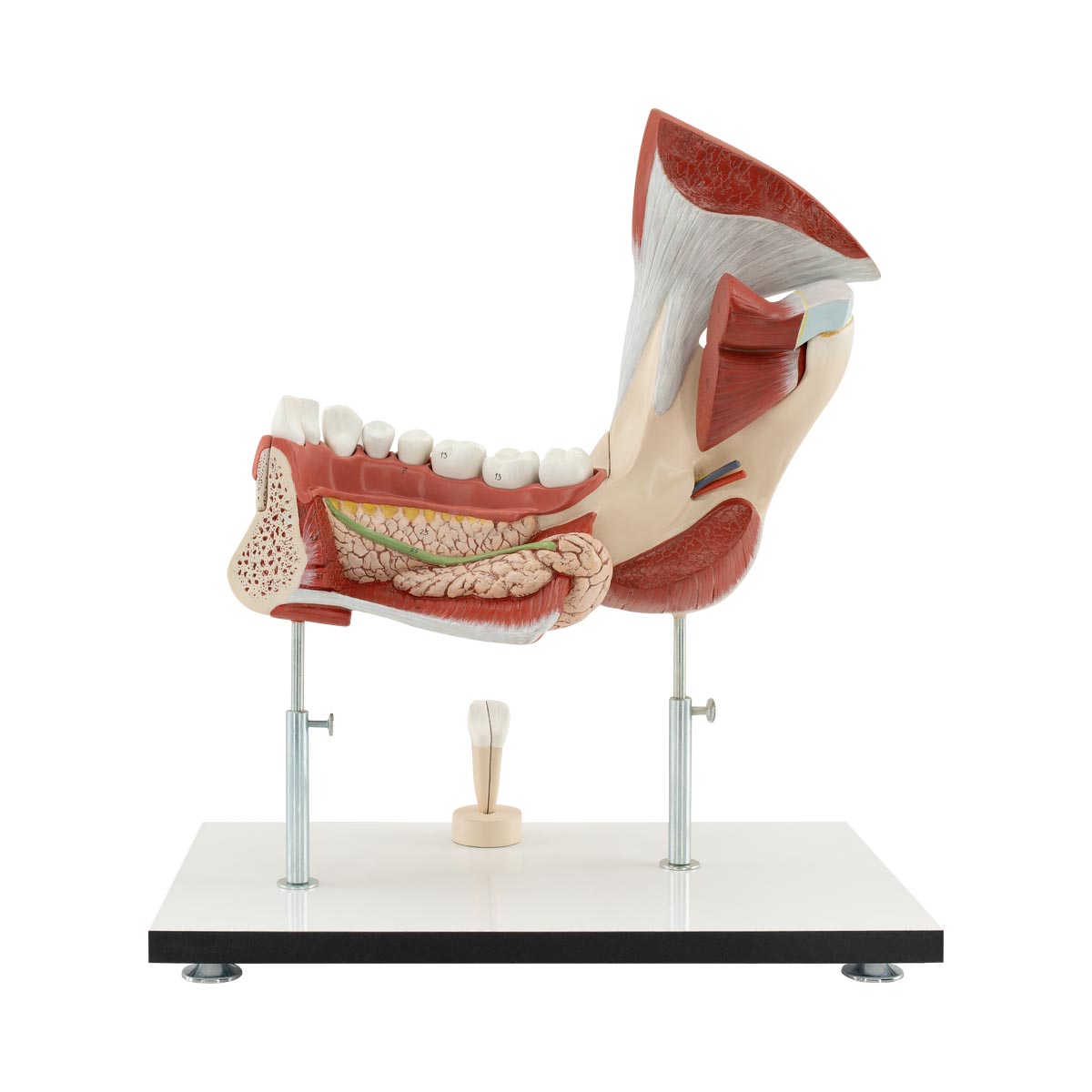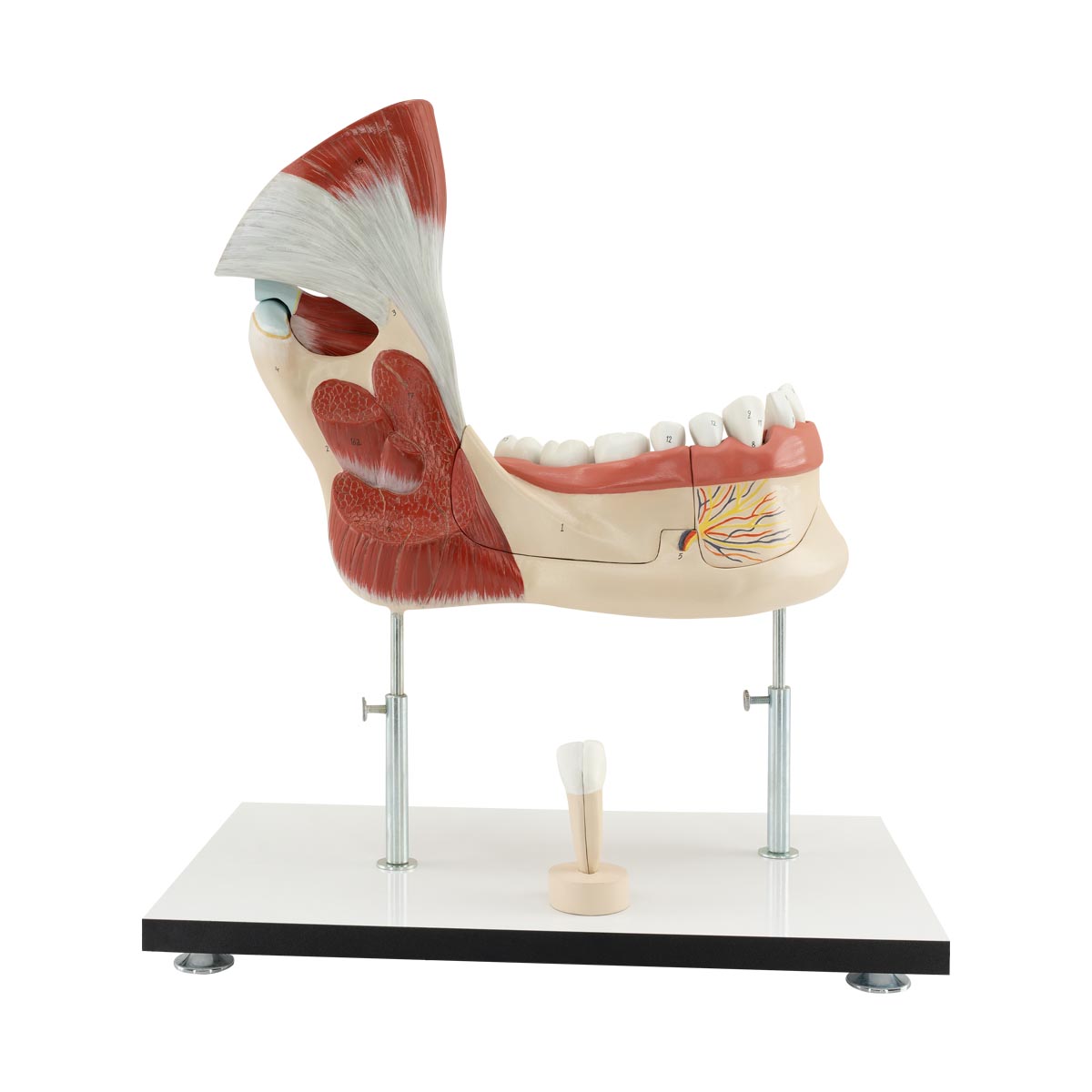 Özel geliştirilmiş plastikten imal edilmiş olup doğal boyutlara göre yaklaşık 3 kez büyütülmüştür. Toplamda 14 parçaya ayrılabilmektedir. Temporomandibular eklemi göstermektedir. Bir kaide üzerine montelidir
