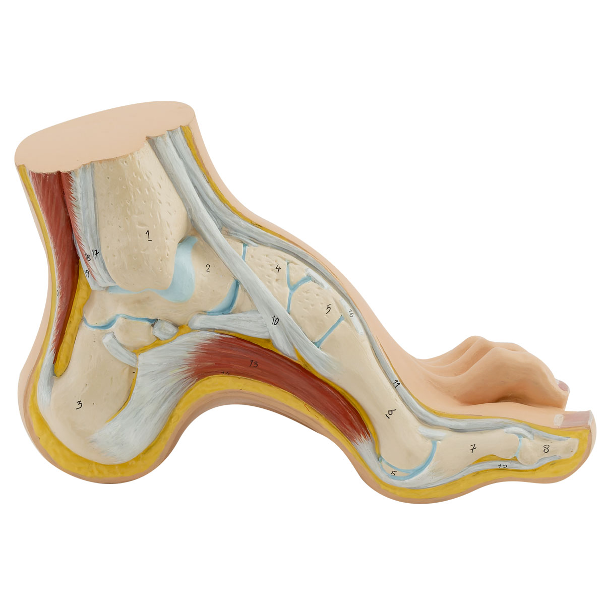 Özel geliştirilmiş plastikten imal edilmiş olup normal boyutlardadır. Tek parçadan oluşan kemerli ayak modeli, ayağın anatomik yapısı ile tibia’nın distal ucunu göstermektedir.