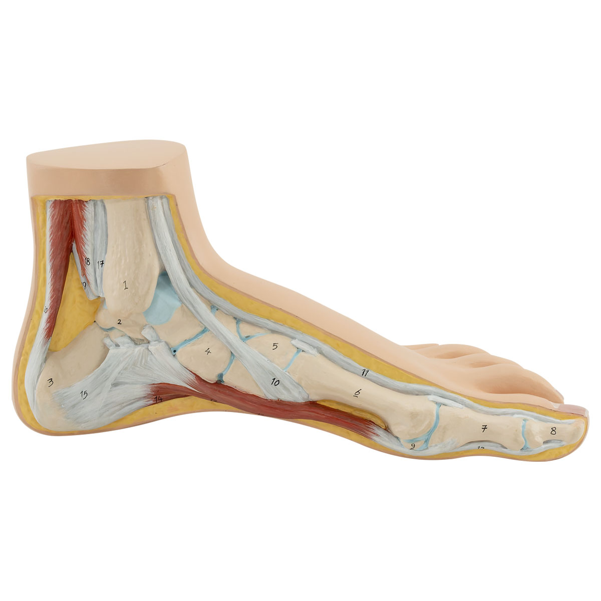 Özel geliştirilmiş plastikten imal edilmiş olup normal boyutlardadır. Model anatomik yapıyı ve tibia’nın distal ucunu göstermekte olup tek parçadan oluşmaktadır. Topuk arkası ve en uzun parmak arasındaki uzunluk 24 cm dir.