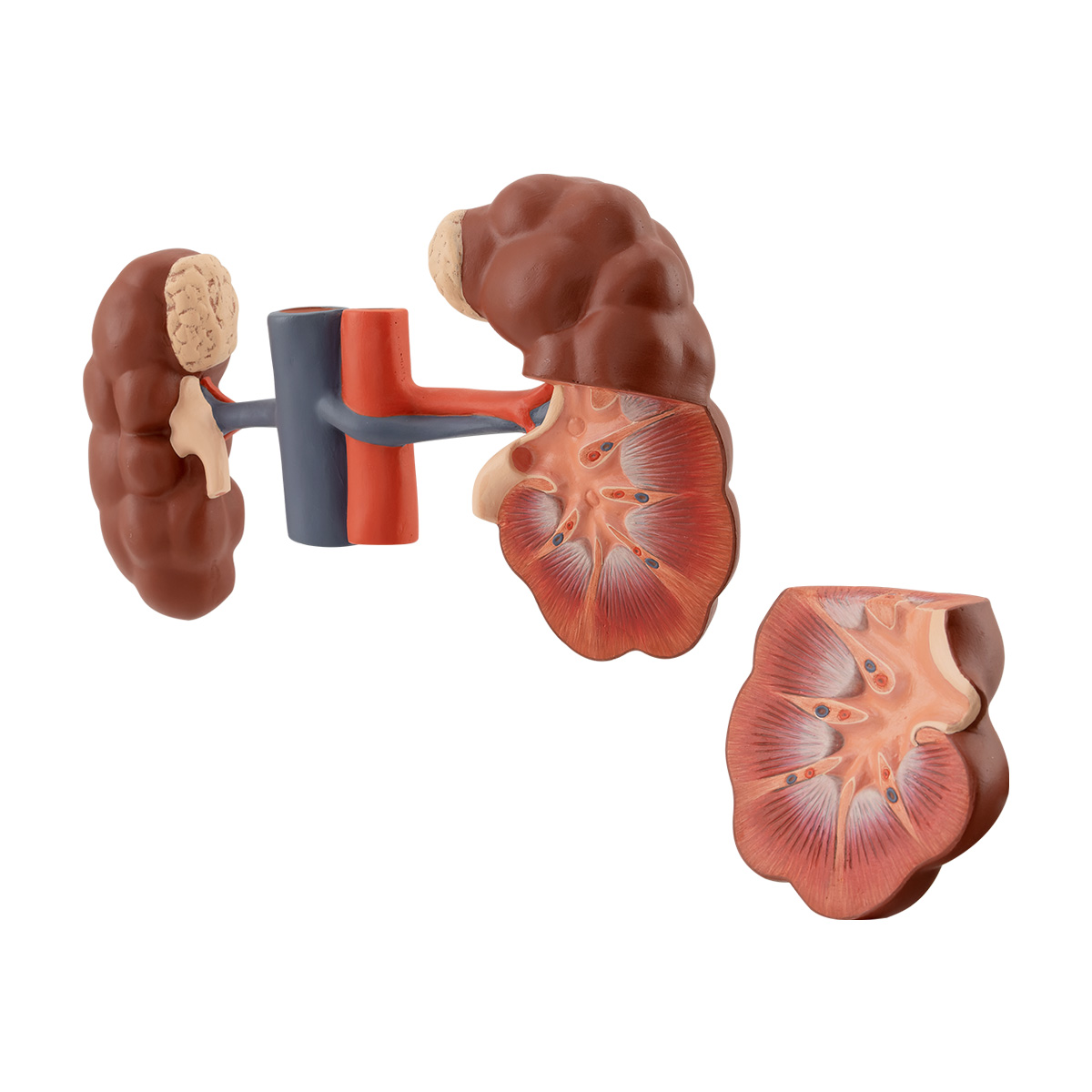 Özel geliştirilmiş plastikten imal edilmiş olup normal boyutlara göre biraz büyütülmüştür. Bir böbreğin ön kısmı ayrılabilir ve böylelikle böbreğin iç yapısına ait detaylar görülebilmektedir. Lobüler yapılı dış görünüme sahiptir. Model toplamda 2 parçadan oluşmaktadır. Bir kaide üzerine montelidir.